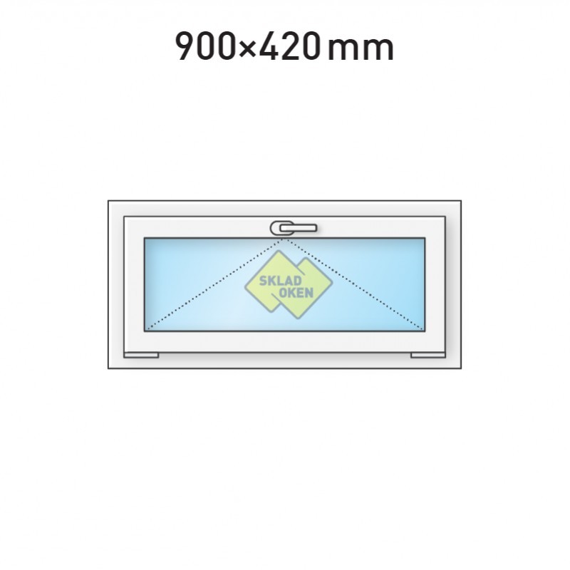 Plastové okno sklopné 90x42 cm (900x420 mm), bílá z interiéru, bílá z exteriéru, čiré sklo