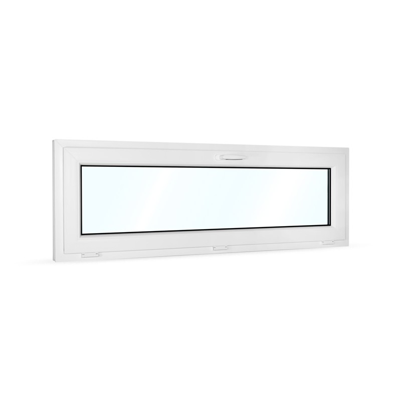 Plastové okno jednokřídlé sklopné o venkovním rozměru rámu okna 160x55 cm v bílé barvě z interiéru i z exteriéru.
