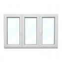 Plastové okno trojkřídlé se štulpem a pevným sloupkem o venkovním rozměru rámu okna 208x154 cm v bílé barvě z interiéru i z exteriéru. Krajní křídla jsou otevíravá i sklopná se stupňovaným výklopem. Prostřední křídlo je otevíravé se štulpem tzn. že mezi levým a prostředním křídlem není při otevření pevný sloupek.