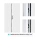 Plastové vedlejší vchodové dveře dvoukřídlé bez středového sloupku (se štulpem) o rozměru rámu 148x208 cm v bílé barvě z interiéru i z exteriéru. Hlavní křídlo dveří je na pravé straně, dělení hlavního a vedlejšího křídla v poměru 2:1. Horní pole jsou zasklená izolačními dvojskly 3/16A/4 s koeficientem prostupu tepla Ug = 1,1 W/m2K v ornamentu činčila. Spodní pole jsou vyplněná PVC panely 24 mm v barvě dveří z obou stran. Vodorovná příčka je ve výšce 800 mm od spodní hrany. Dveře jsou ve verzi s pravým otevíráním a jsou otevíravé dovnitř. Dveře mají nízký hliníkový práh.