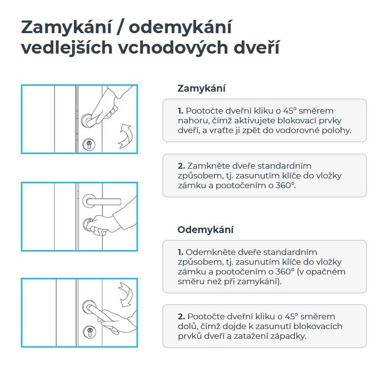 Vedlejší vchodové dveře se nejčastěji používají jako vedlejší vchod do domu, vstup do garáže, terasu nebo zahradu a mohou plnit funkci standardních vchodových dveří.